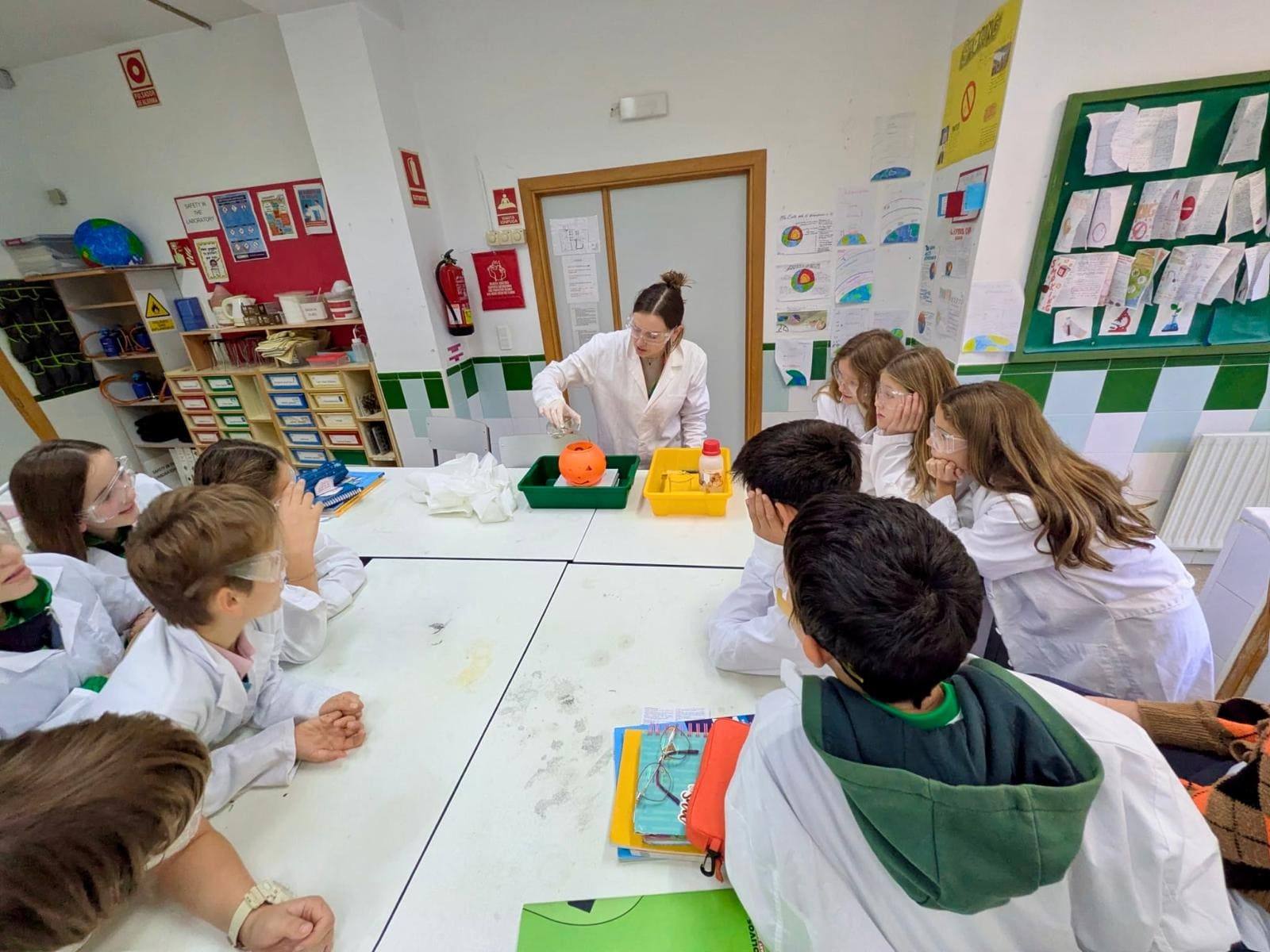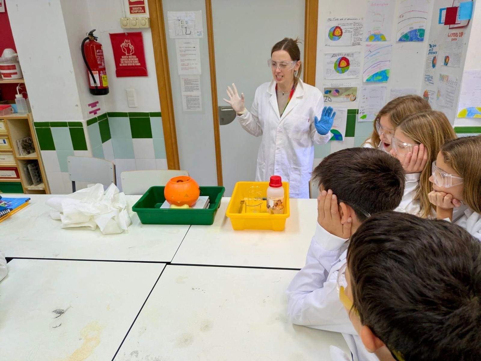 Esta semana, nuestros alumnos y alumnas de Year 7 se convirtieron en pequeños científicos para realizar un experimento de química con temática de Halloween conocido como “La calabaza que vomita”.