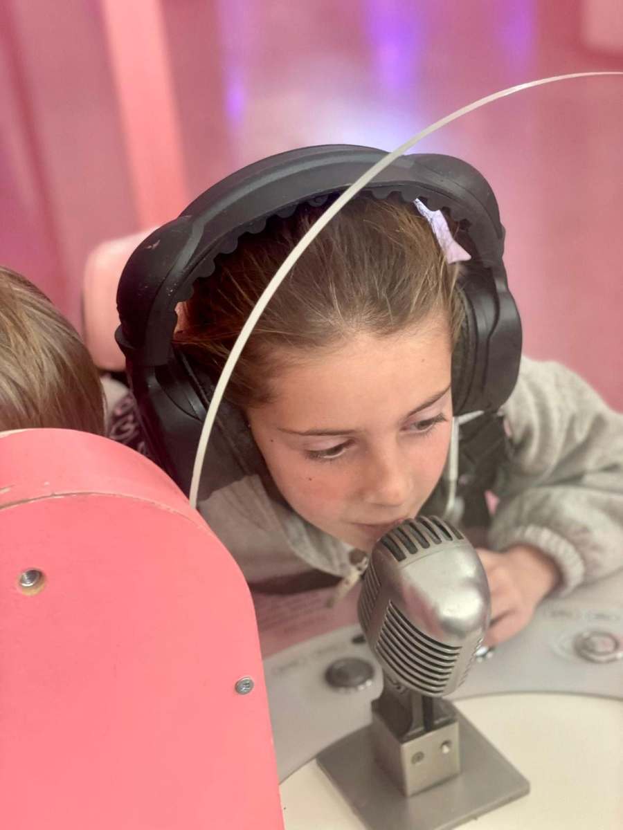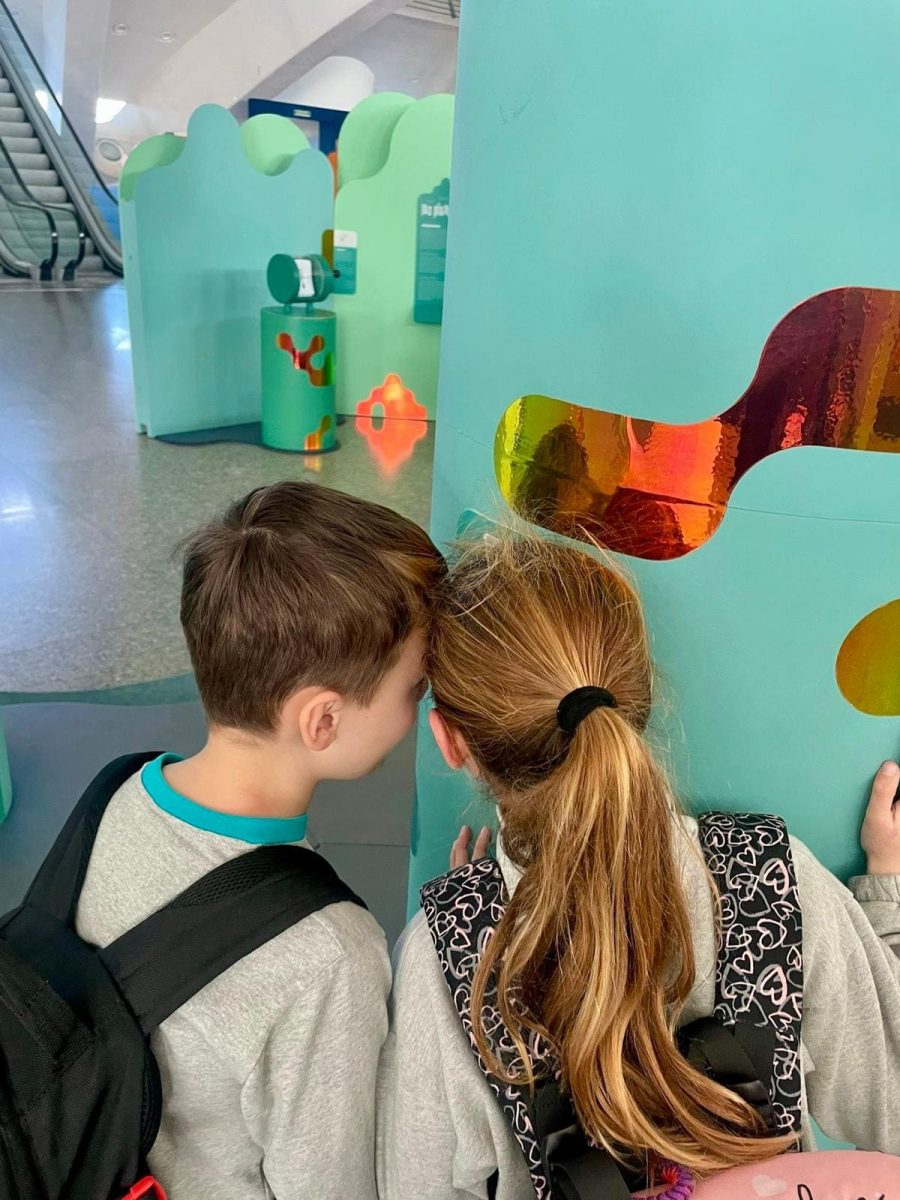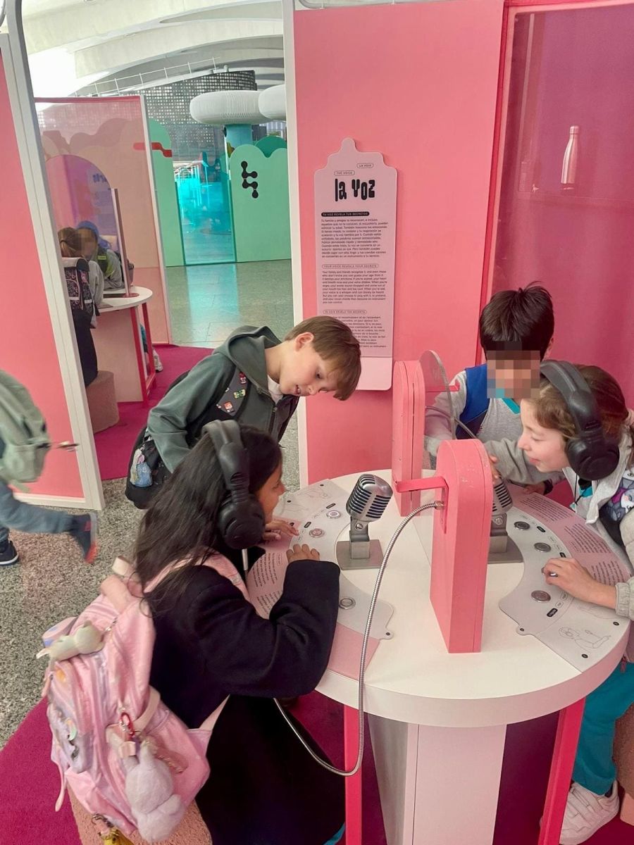 Durante la visita, los niños y niñas exploraron diferentes espacios interactivos diseñados para fomentar la curiosidad y el pensamiento científico. Descubrieron cómo la luz y el color influyen en nuestra percepción, experimentaron con el sonido y la voz en instalaciones prácticas y participaron en entornos inmersivos que favorecían la observación, la reflexión y el cuestionamiento.