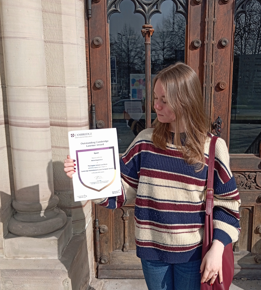 Asimismo, nos sentimos especialmente orgullosos de Mariia Bogdanova, quien ha obtenido el Top in Spain Award en Cambridge International A Level Computer Science, al conseguir la calificación más alta de toda España en la convocatoria de junio de 2025.