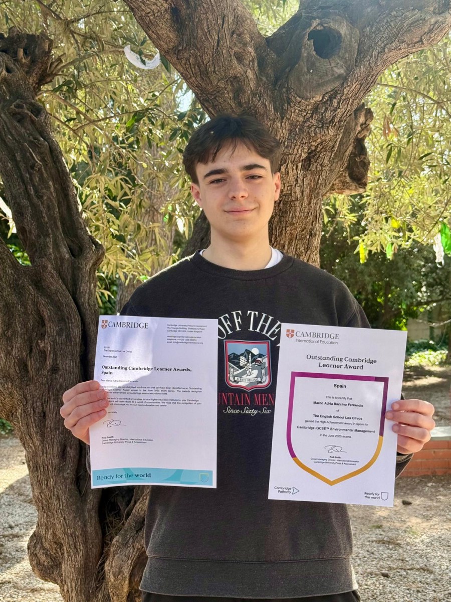 Uno de nuestros alumnos, Marco Adrià Baccino Ferrandis, ha recibido el High Achievement Award in Spain en Cambridge IGCSE Environmental Management en la convocatoria de junio de 2025. Este premio reconoce a los estudiantes que logran un resultado sobresaliente a nivel nacional en su materia.