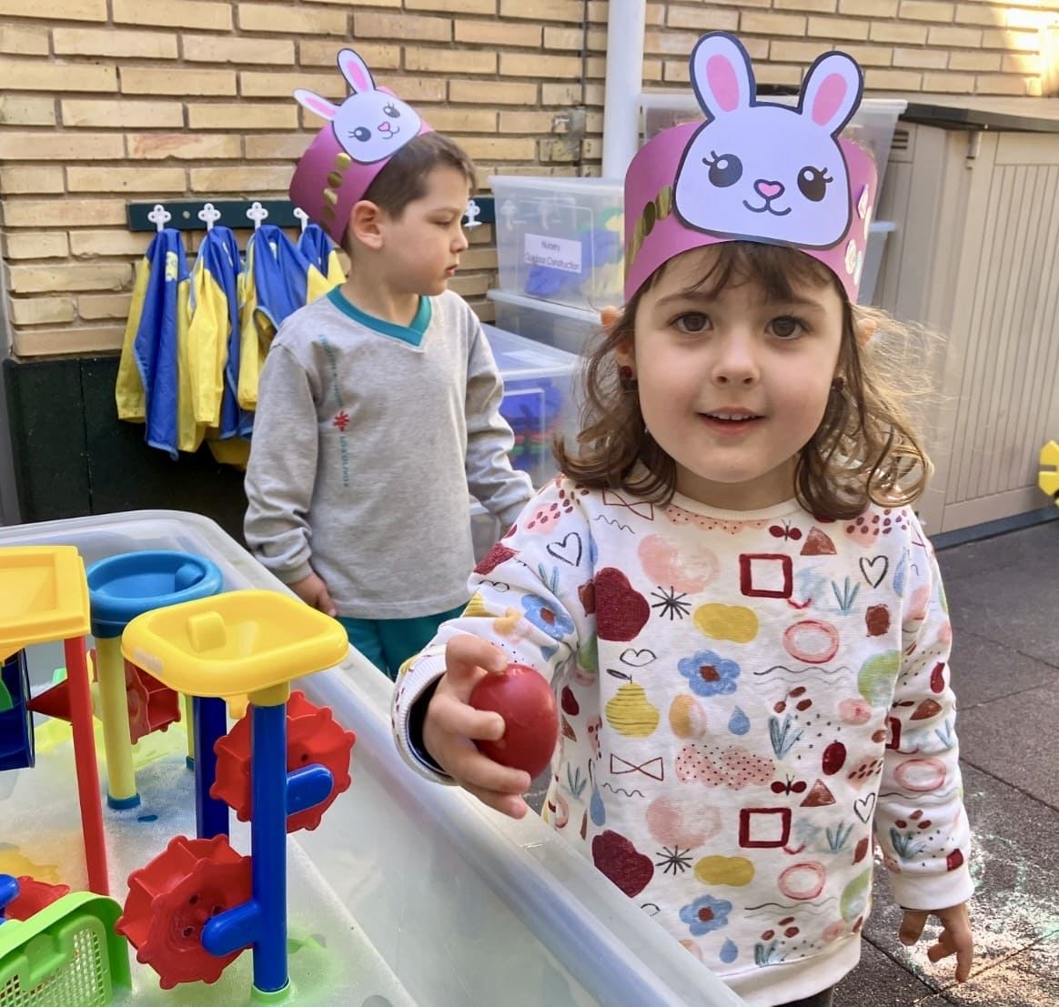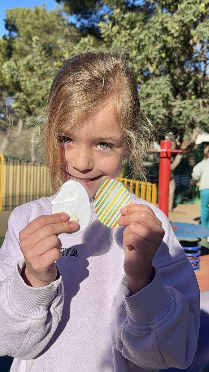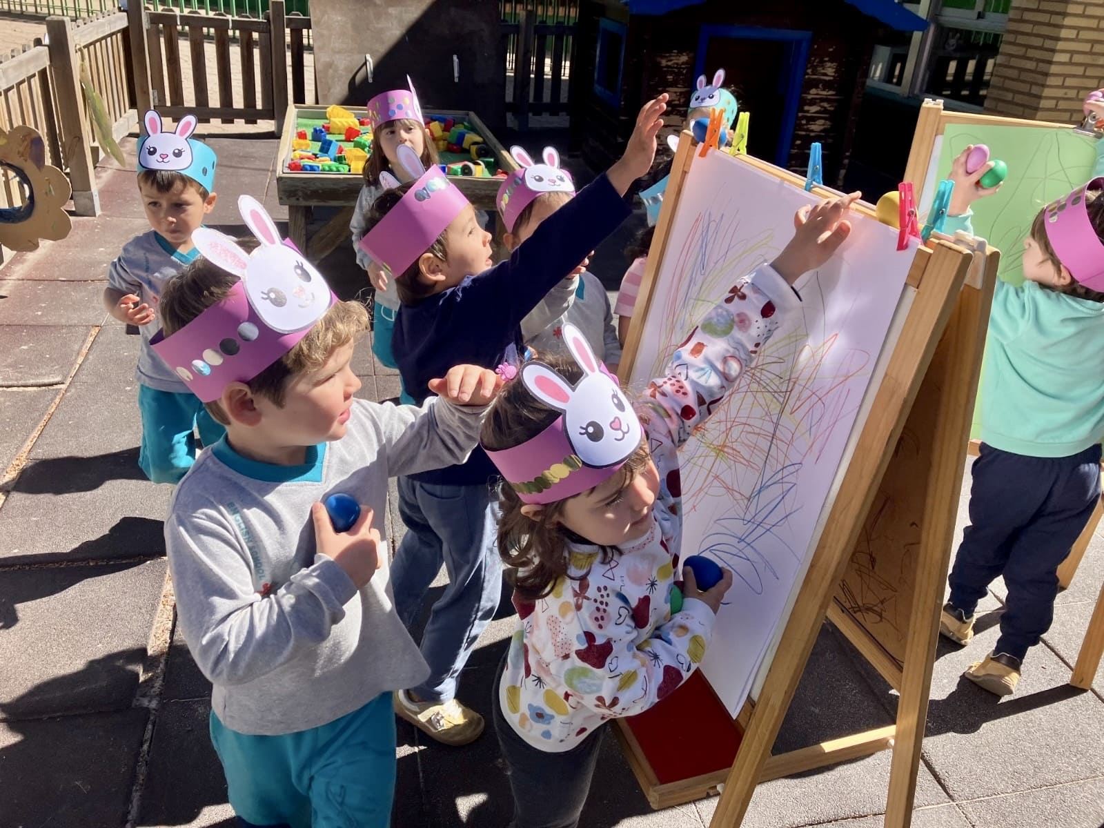 Con sus coloridas coronas de conejito, los niños y niñas han recorrido diferentes espacios al aire libre en busca de huevos escondidos, participando además en distintas actividades lúdicas. Esta propuesta ha fomentado el trabajo en equipo, la curiosidad y la capacidad de observación, ya que los alumnos han colaborado para completar el reto.